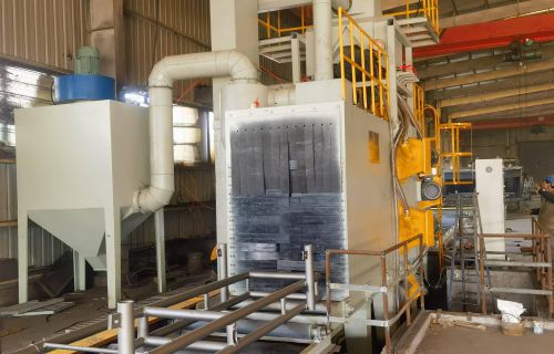 鋼結(jié)構(gòu)拋丸機(jī)工作原理:???? 鋼結(jié)構(gòu)拋丸機(jī)是將工件吊放在輸送輥道上,輥道輸送系統(tǒng)將工件向前輸送,當(dāng)工件...